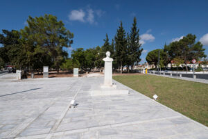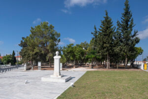 You will find it at the junction of 25th of March Street and Georgiou Griva Digeni Street, behind the municipal mansion and municipal gardens. The small, triangular square was named after our national poet Dionysios Solomos, whose bust adorns its open space today. Made of Pentelic marble, this bust is made by well-known Greek sculptor Vassos Falireas. At its base are the lyrics of our national anthem ‘Hail Oh Hail Freedom’, while there is an ancient Greek lyre engraved. The bust and its base were made at the expense of the Pafos Naturalist Spiritual Group and the inauguration was made by Archbishop Makarios III in May 1974.